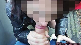 hot girl strokes my flashing cock between cars on street till risky public cumshot