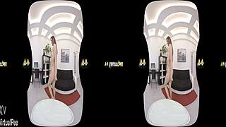 VirtualPee Czech Brunette Dildo Fucks Splashes Piss Everywhere