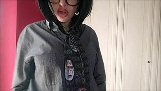 the cute horror queen gets scared and fingers her pussy until she squirts all over