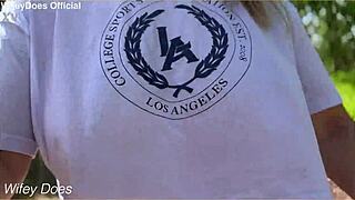 Wifey flashes her big tits braless in exciting public spots