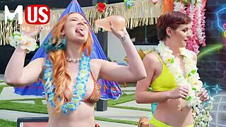 Jerkaoke summertime orgy bends over models in wild group handjob game