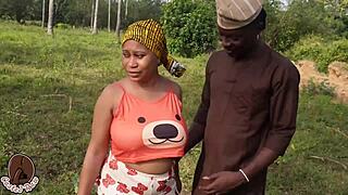 sexy wife rides farmer adigun's monster black cock outdoors