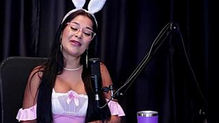 anabele nogueira demonstrates her blowjob and flaunts her huge tits in sheer red