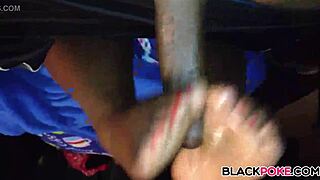 Ebony wife strokes toes on black cock footjob high def slick