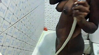 Ebony girlfriend's horny bathroom fingering with friend. 05:15