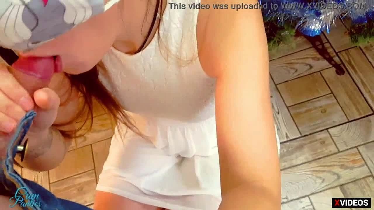 Step sister surprises with wet pussy gift under Christmas tree in cosplay costume