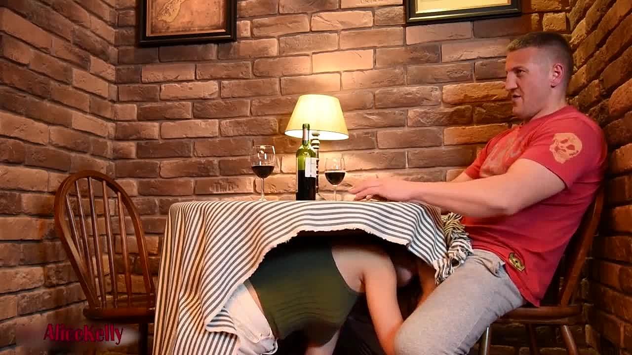 Crazy Hot Teen Sucks Cock Under Cafe Table in Wild Public Scene