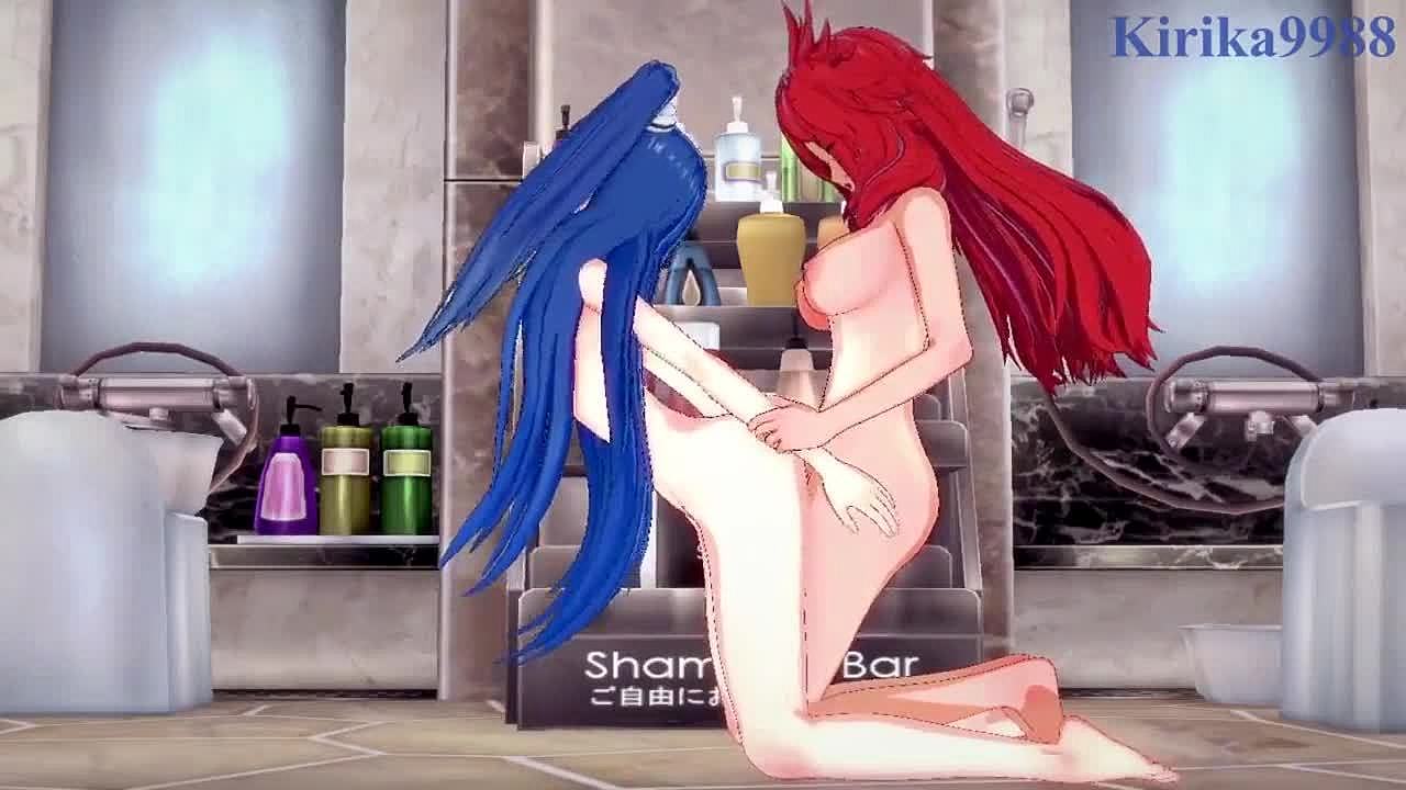laplus darkness and towa tokoyami engage in intense futa sex, their curvy bodies colliding in 3d hentai cumshot.