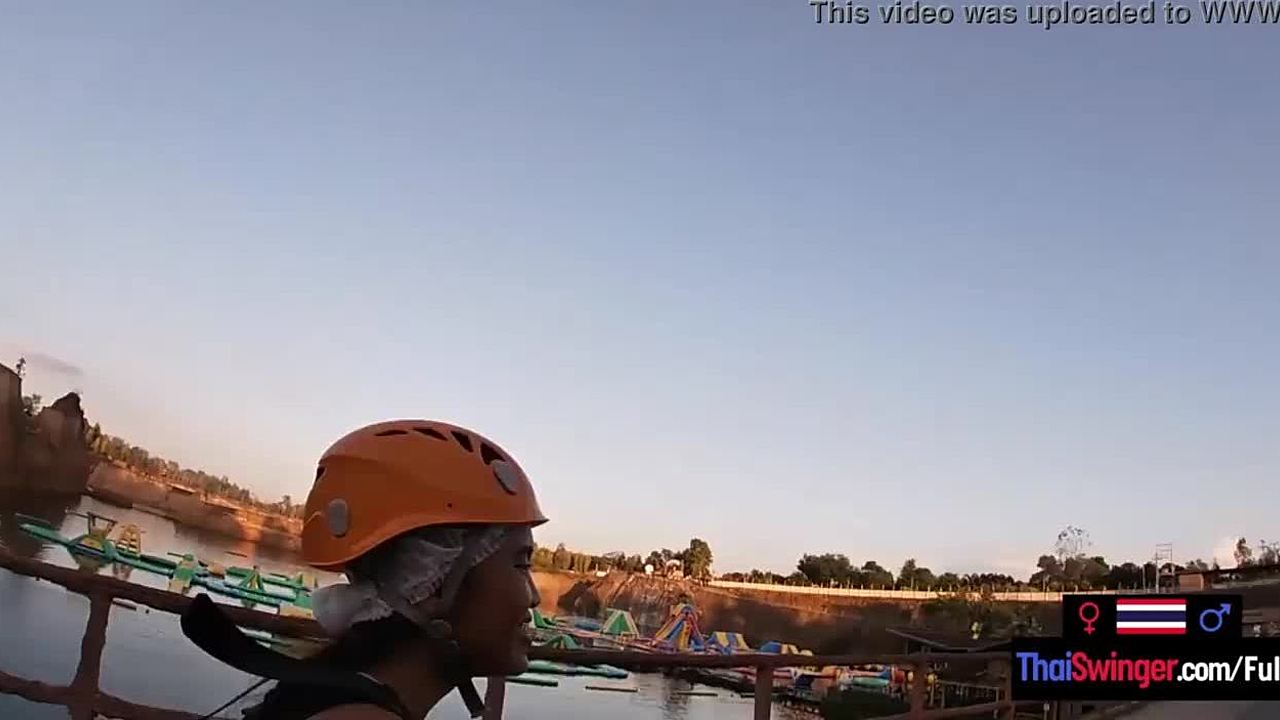 Asian college teen girlfriend rides boyfriend's big cock after waterpark fun