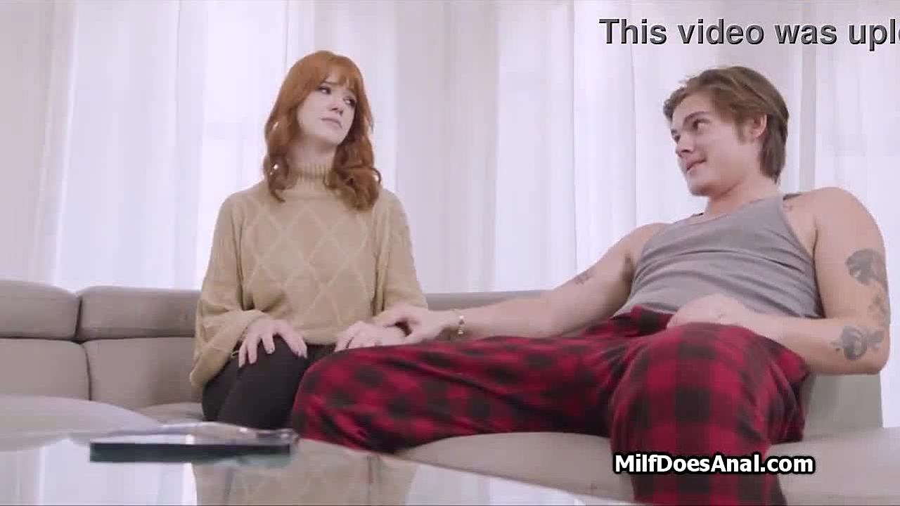 Dildo Stretches Busty Redhead Milf's Tight Asshole Before Hard Cock Pounding