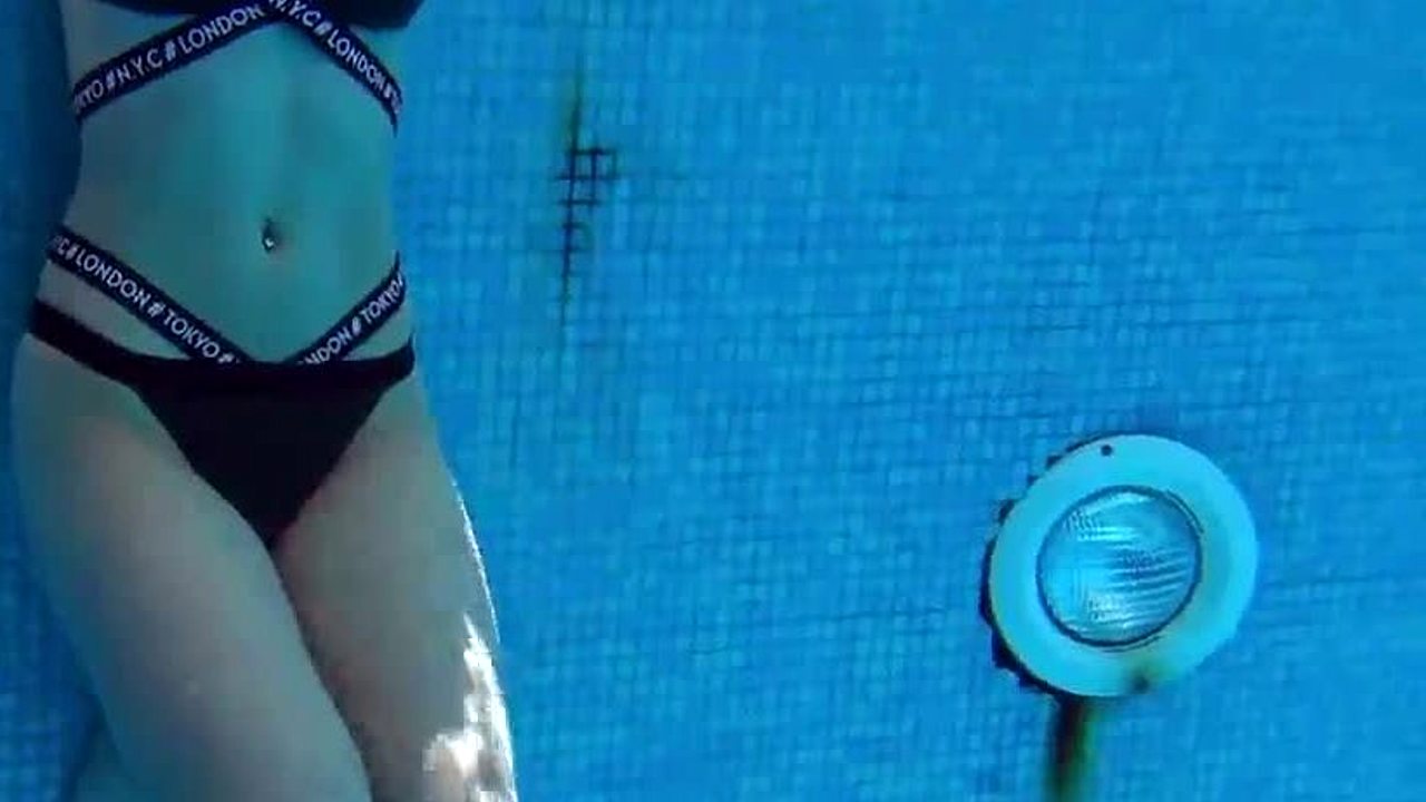 Look at those hot tits and shaved pussy underwater in the pool