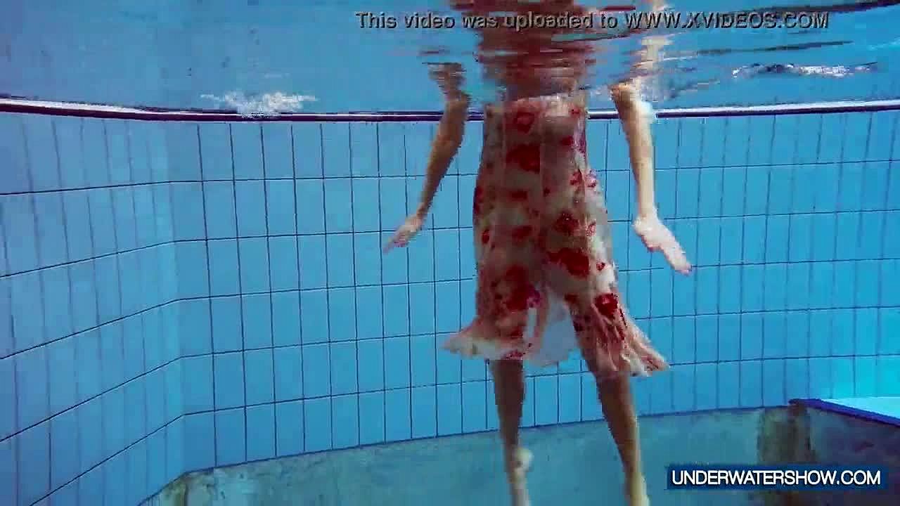 Look at those hot tits and shaved pussy underwater in the pool