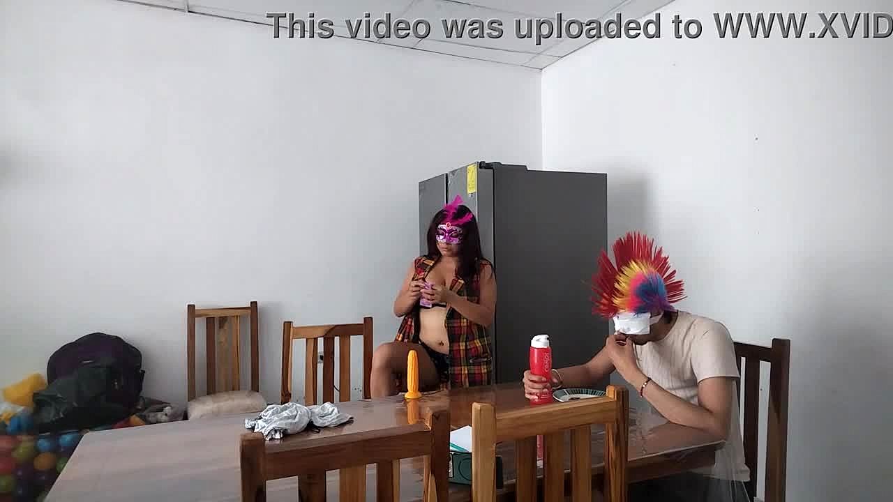 Teasing dildo while feeding blind man